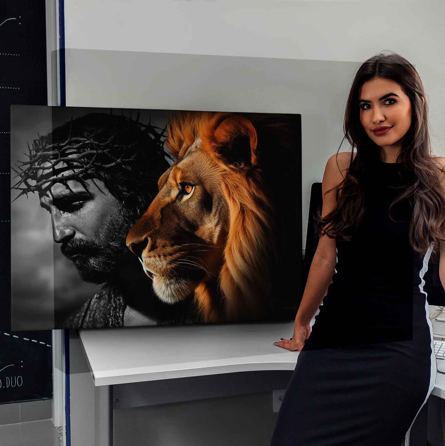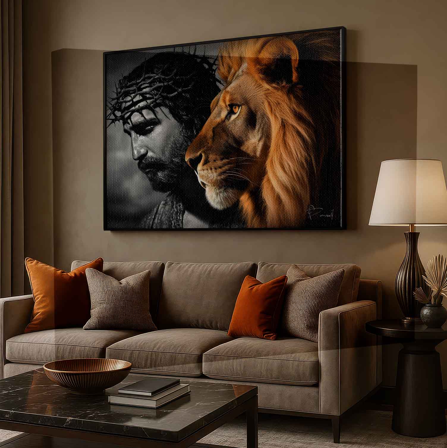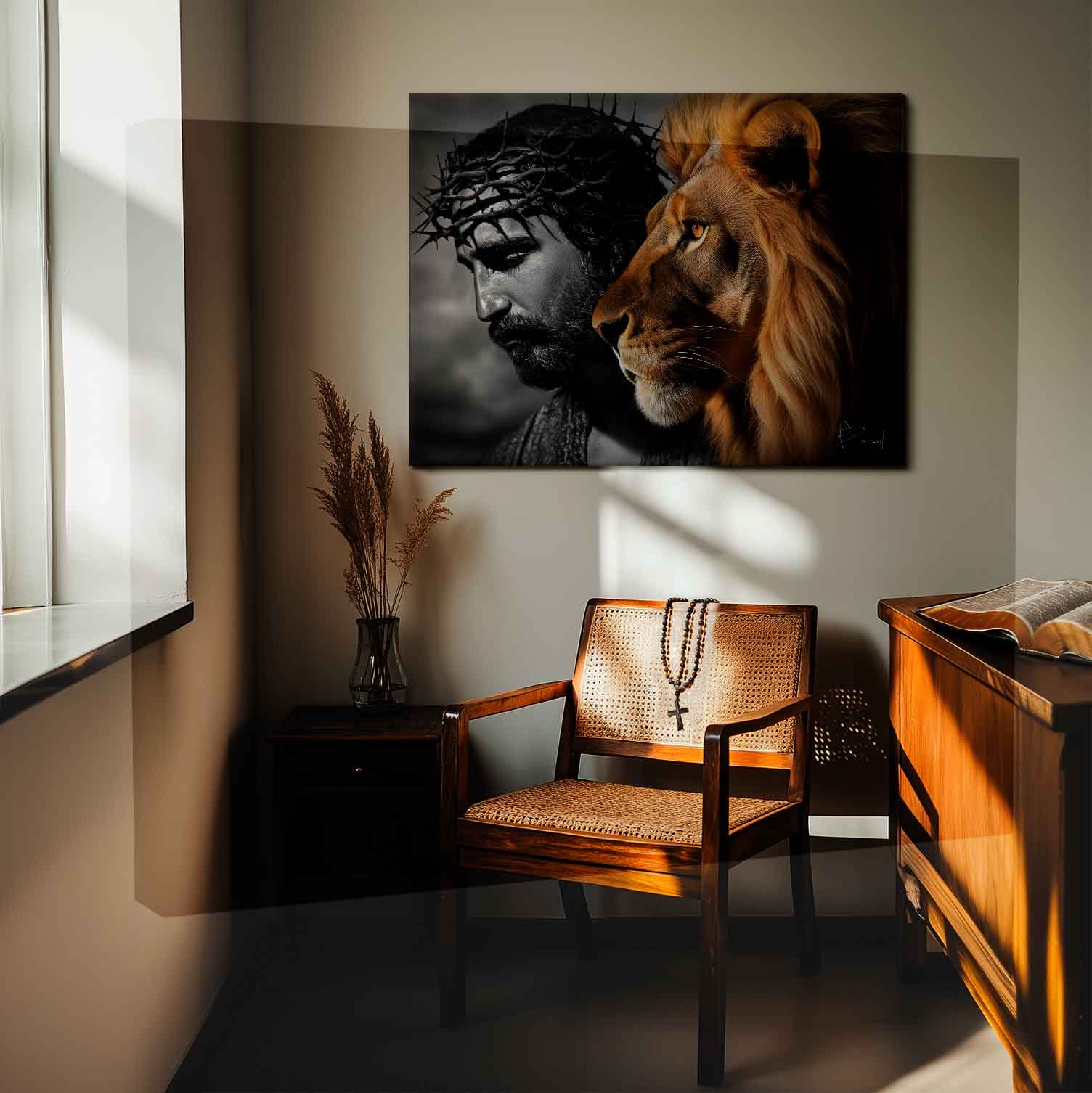 In the Bible, Jesus is known as the “Lion of the Tribe of Judah.” This expression is connected to His earthly lineage, the tribe of Judah. The designation “Lion of the Tribe of Judah” refers to the fulfillment in Christ of the promises of a kingdom made to that tribe. The strength of the lion, united with the love and humility of Christ, is translated into a beautiful artwork designed not only to elevate your décor, but also to serve as a constant reminder of the foundation and purpose of your faith.
