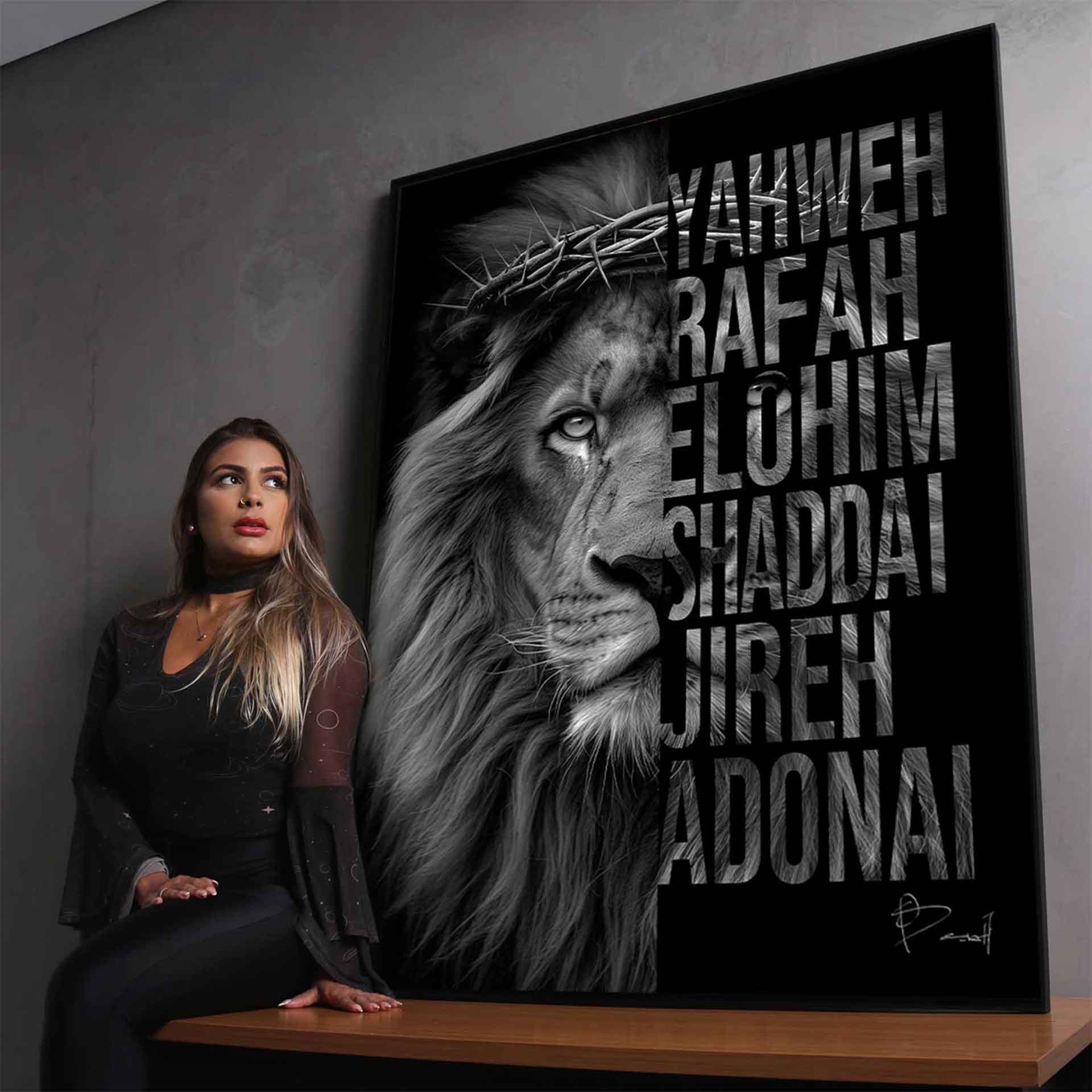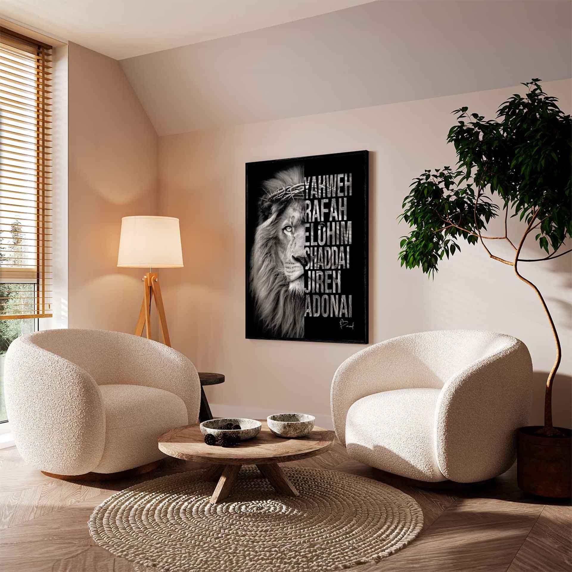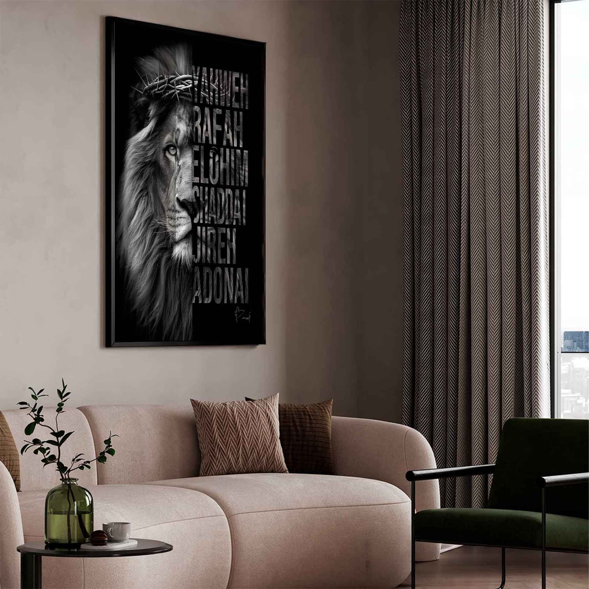 “The Names of God” is more than a decorative piece; it is a source of inspiration and spiritual reflection. Integrating this artwork into a space brings forth a constant symbol of strength, faith, and hope. The fusion of the lion’s majesty with the sacred names of God creates a powerful presence capable of transforming any environment — whether a home, office, or place of worship.